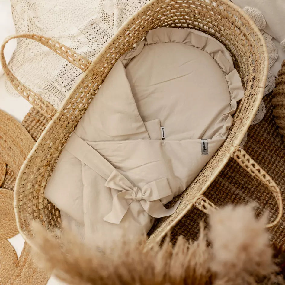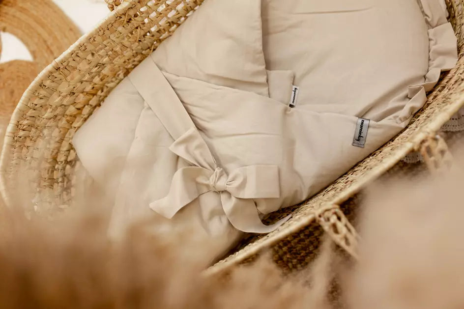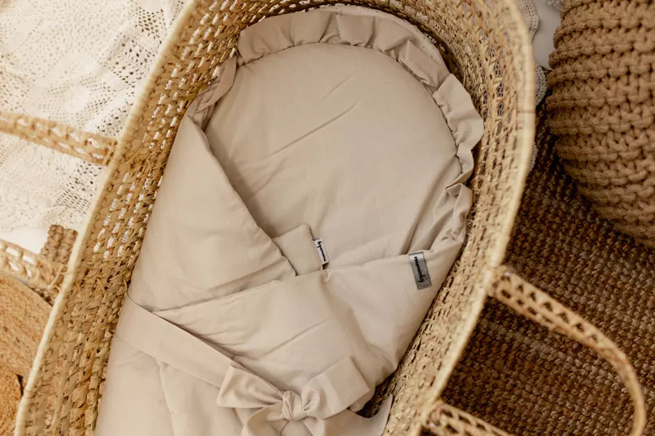 Foret babysvøb i 100% fløjlsblødt bomuldssatin og med varmeregulerende antiallergisk for. Svøbet har blød justerbar burretape-lukning samt medfølgende bindebånd, for tryg og bekvem svøbning af dit barn.