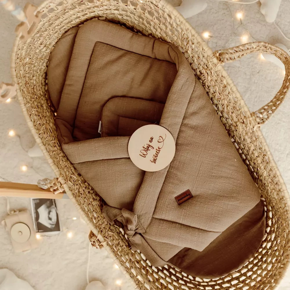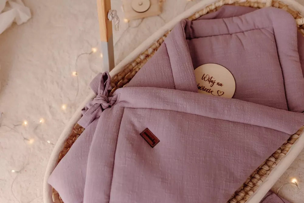 Foret babysvøb i 100% blødt og lækkert musselinbomuld samt varmeregulerende antiallergisk for. Svøbet har blød justerbar burretape-lukning samt medfølgende bindebånd, for tryg og bekvem svøbning af barnet.