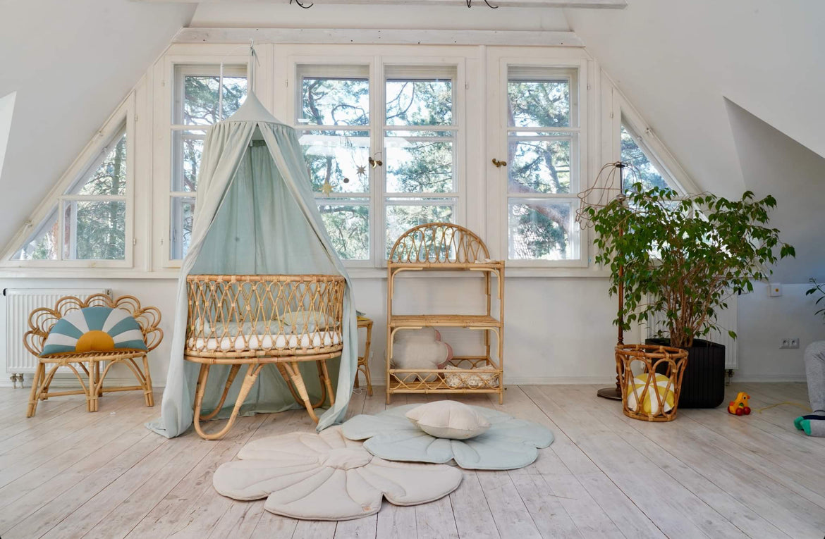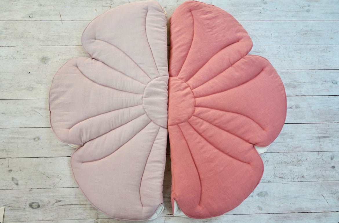 Blomstermåtten fungerer som et fantastisk behageligt tæppe i børneværelset, kan tjene som en tilføjelse til et legetelt, underlag under en baldakin, som smuk vægdekoration eller som sødt indslag i stuens legehjørne. Den kan også bruges til leg i haven eller til sommerens picnics.
