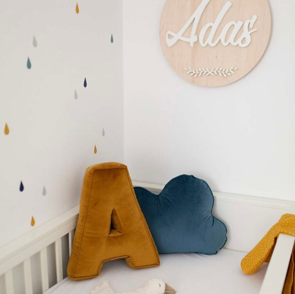 En dekorativ pude i form af et bogstav er en fin og personlig udsmykning i børneværelset. Den fås i flere forskellige smukke farver, som passer perfekt ind i enhver indretning. Puden har ingen lynlås, for at undgå irritation, og er afsluttet med en dekorativ kant, der understreger det elegante design.