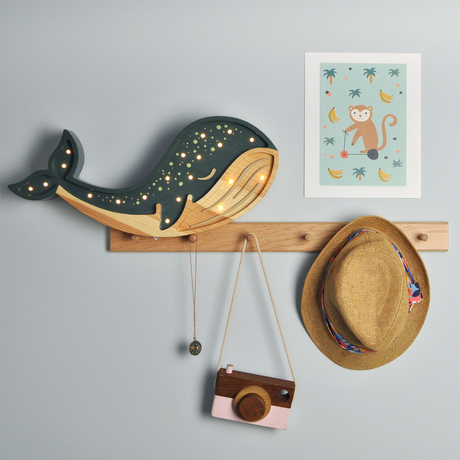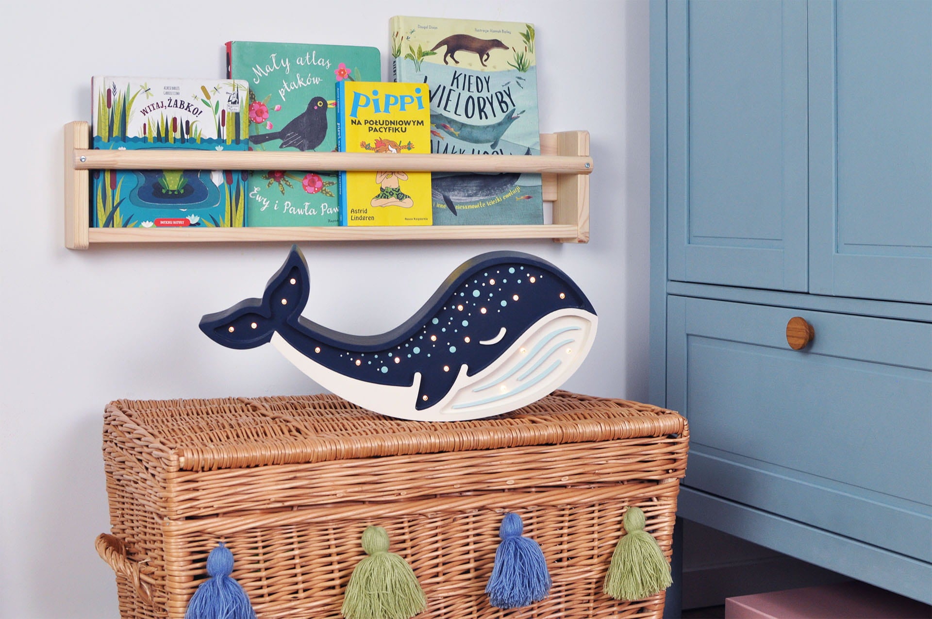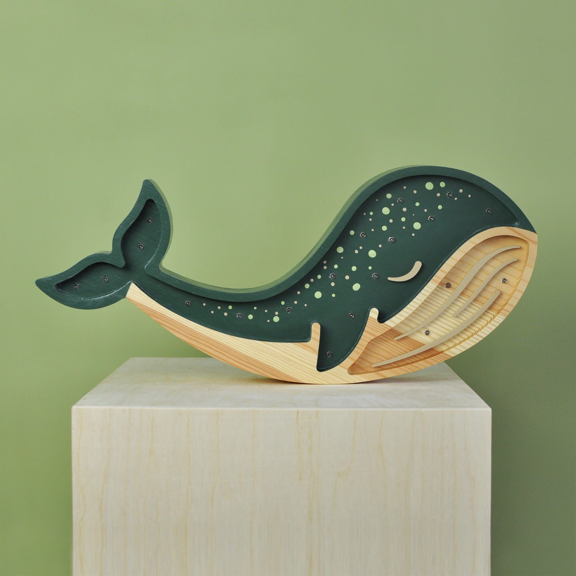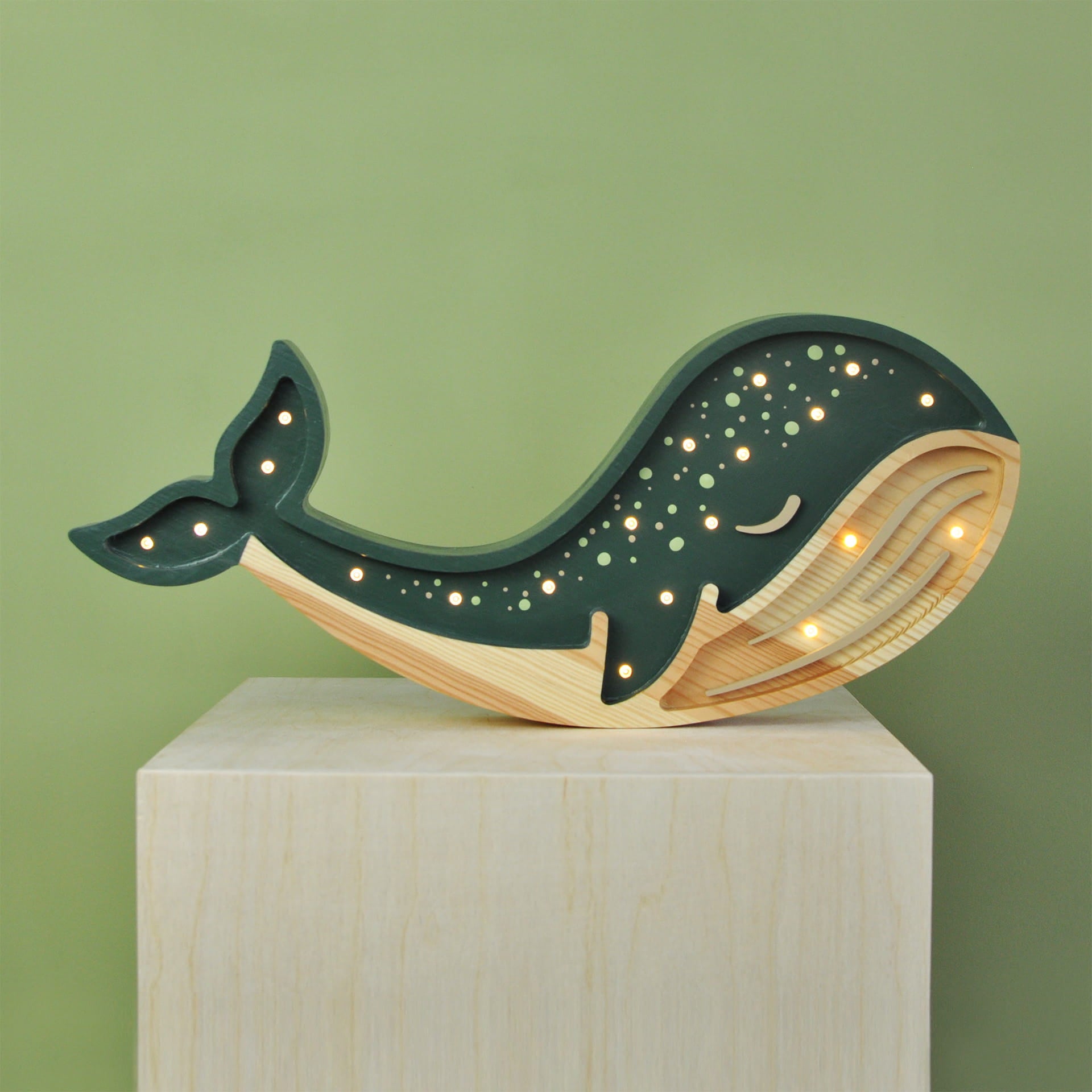 Transporter dit barn til havets dybder med den hvalformede natlampe. Denne yndige sengelampe vil være en fantastisk tilføjelse til dit lille barns værelse. Den er lavet af materialer af højeste kvalitet og giver både sikker og skånsom belysning til sengetid.