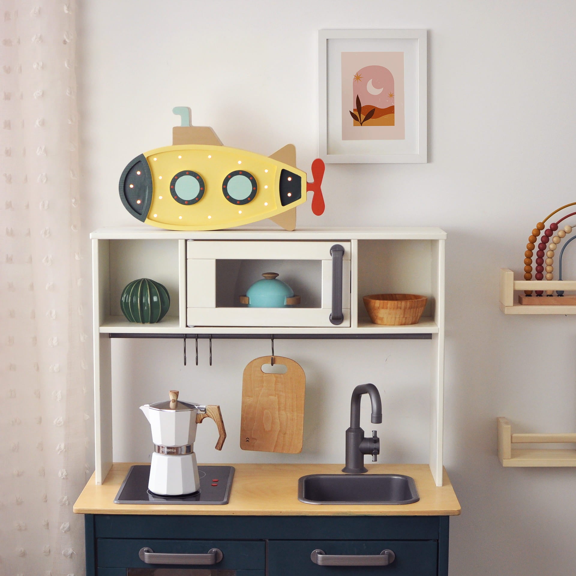 Det unikke design af denne børnenatlampe tiltrækker opmærksomhed og skaber en magisk atmosfære i rummet. Dit barn vil glæde sig over at se en ubåd oplyse sine drømme om natten.